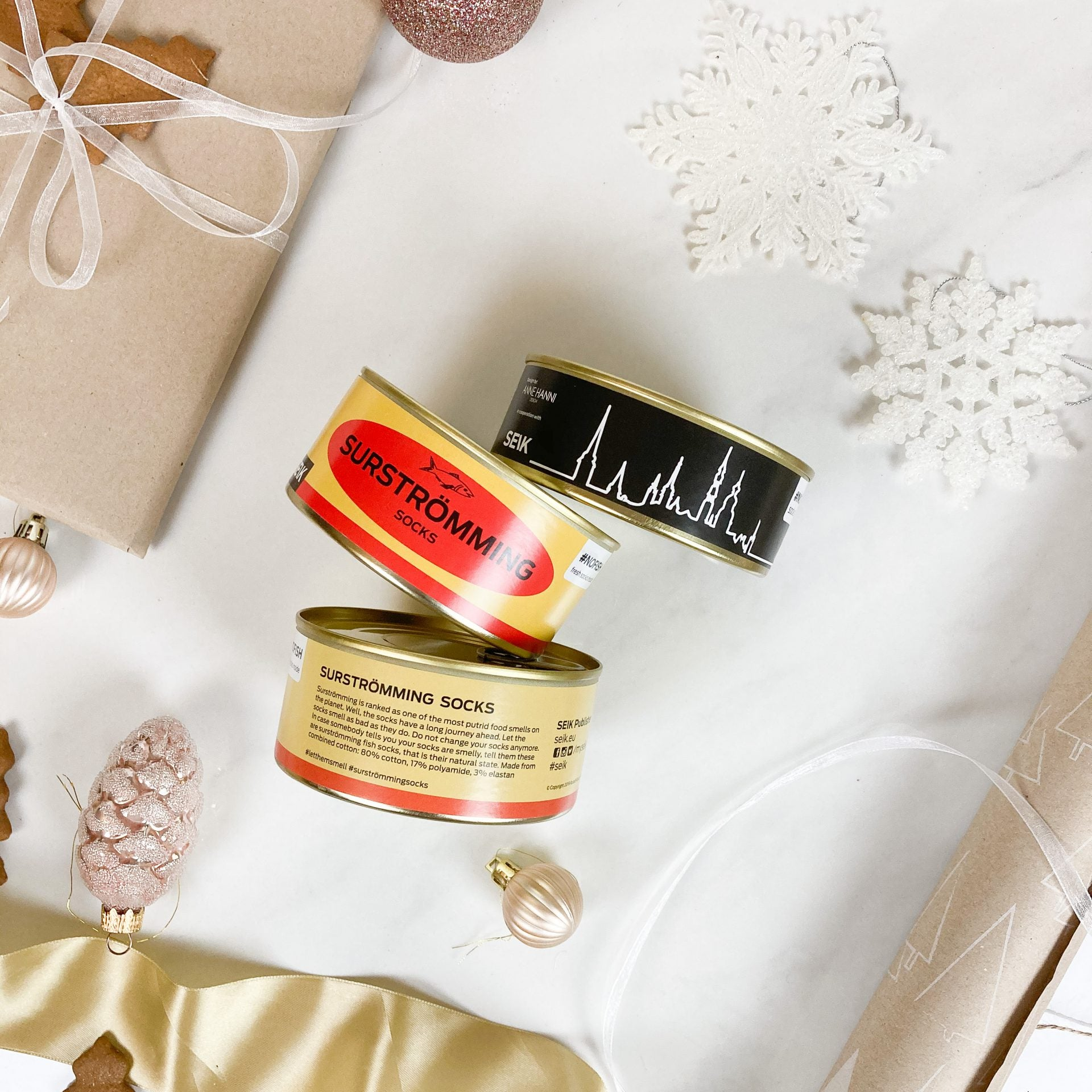 1 × Surströmming-sukat tölkissä #NoFish (koko 35–40, naisille)